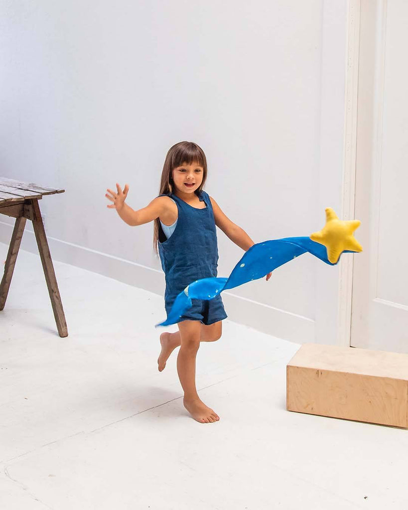 Creative play is what Sarah’s Silks is all about. Their toys are simple, beautiful, and open-ended inspiring children to use their imagination in their daily lives. Pretending is the way children learn best and how they process life experiences. When children are given simple props, they use their imaginations to "fill in the blanks"; so a playsilk easily becomes water to sail a boat on, a sling to hold their doll in, a cape to fly with, and so much more